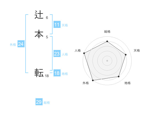 辻本 転さんの総格は29画の4点!
