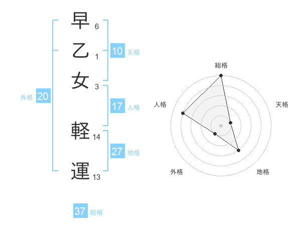 早乙女 軽運さんを姓名の画数から五運を鑑定