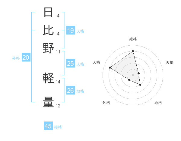 日比野 軽量さんを姓名の画数から五運を鑑定