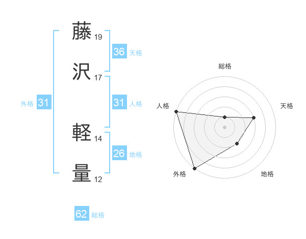 藤沢 軽量さんを姓名の画数から五運を鑑定