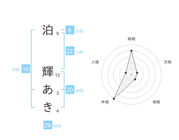 泊 輝あきさんを姓名の画数から五運を鑑定