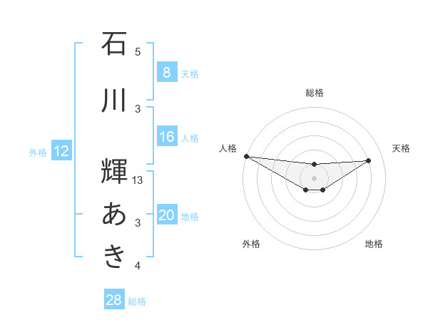 石川 輝あきさんを姓名の画数から五運を鑑定