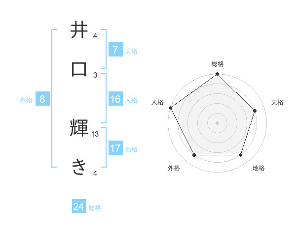 井口 輝きさんの地格は17画の4点!