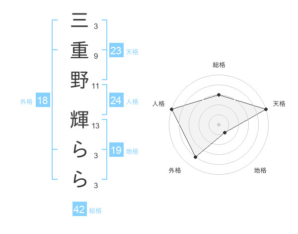 三重野 輝ららさんを姓名の画数から五運を鑑定