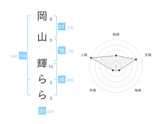 岡山 輝ららさんを姓名の画数から五運を鑑定