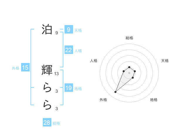 泊 輝ららさんを姓名の画数から五運を鑑定