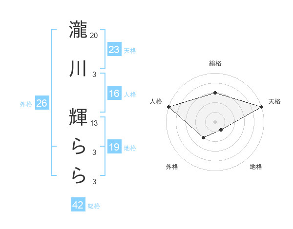 瀧川 輝ららさんを姓名の画数から五運を鑑定