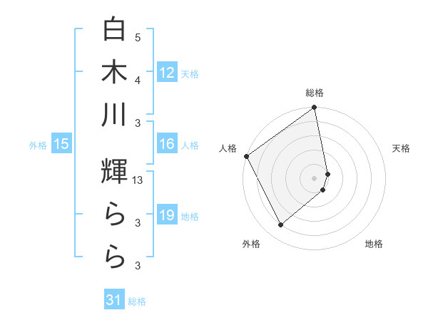 白木川 輝ららさんを姓名の画数から五運を鑑定
