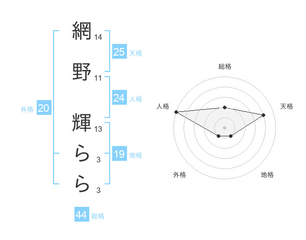 網野 輝ららさんを姓名の画数から五運を鑑定
