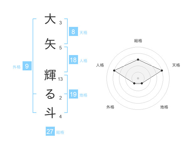 大矢 輝る斗さんを姓名の画数から五運を鑑定