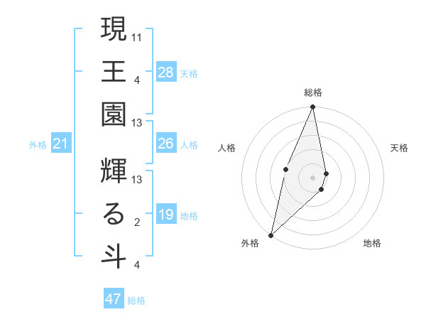 現王園 輝る斗さんを姓名の画数から五運を鑑定