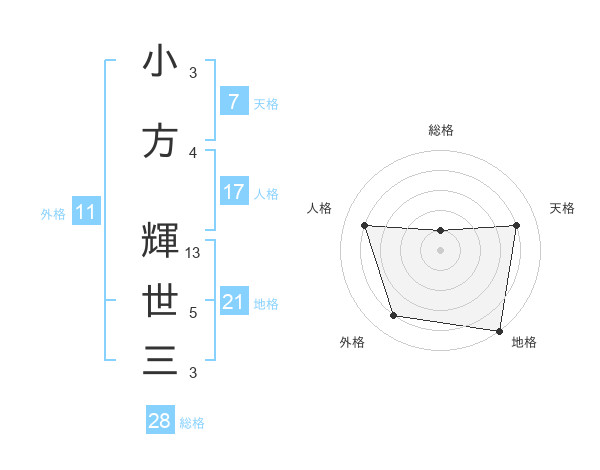 小方 輝世三さんを姓名の画数から五運を鑑定