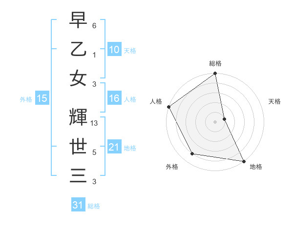 早乙女 輝世三さんを姓名の画数から五運を鑑定