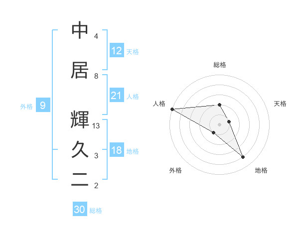 中居 輝久二さんを姓名の画数から五運を鑑定