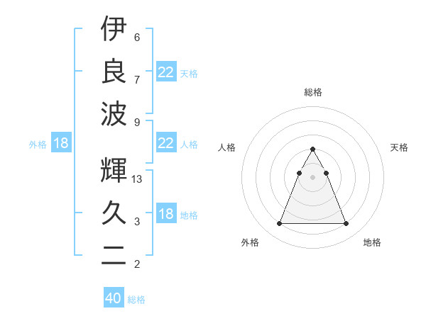 伊良波 輝久二さんの総格は40画の2点