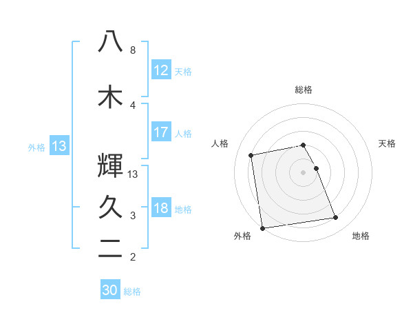 八木 輝久二さんを姓名の画数から五運を鑑定