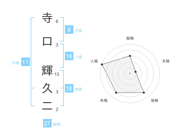 寺口 輝久二さんの総格は27画の3点!