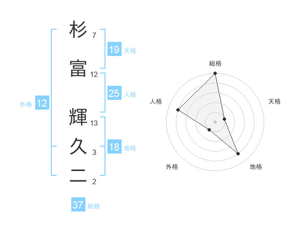 杉富 輝久二さんを姓名の画数から五運を鑑定