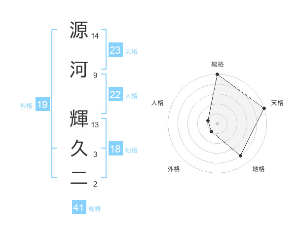 源河 輝久二さんを姓名の画数から五運を鑑定