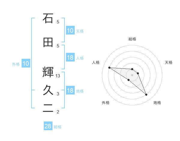 石田 輝久二さんを姓名の画数から五運を鑑定