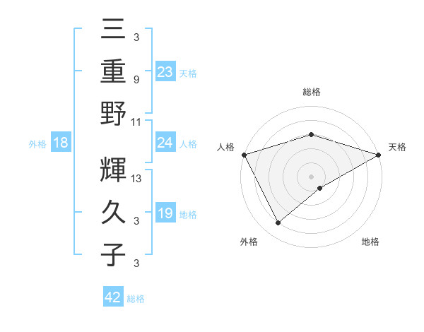 三重野 輝久子さんを姓名の画数から五運を鑑定
