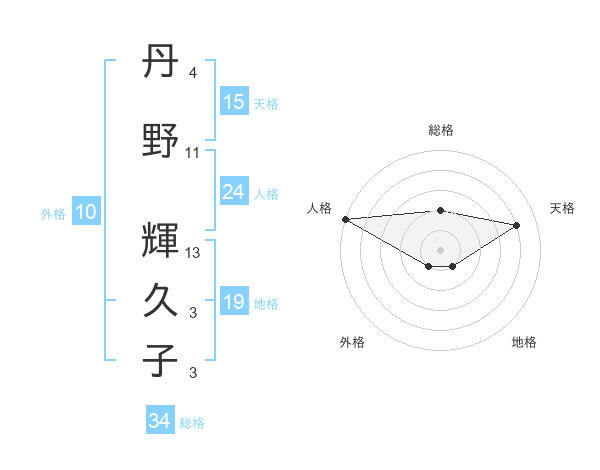 丹野 輝久子さんを姓名の画数から五運を鑑定