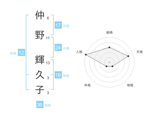 仲野 輝久子さんの外格は12画の1点!