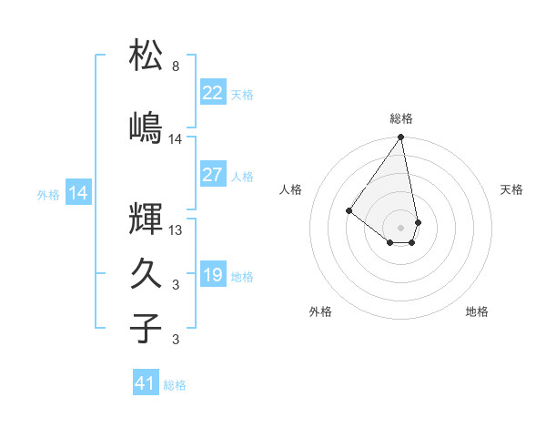 松嶋 輝久子さんを姓名の画数から五運を鑑定