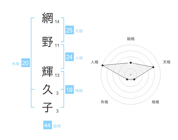 網野 輝久子さんの総格は44画の2点