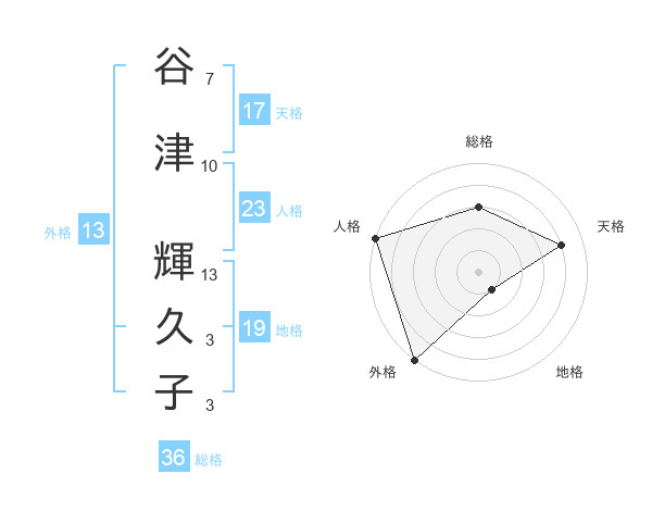谷津 輝久子さんを姓名の画数から五運を鑑定
