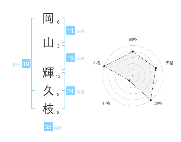 岡山 輝久枝さんを姓名の画数から五運を鑑定