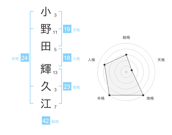 小野田 輝久江さんを姓名の画数から五運を鑑定