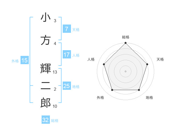小方 輝二郎さんを姓名の画数から五運を鑑定
