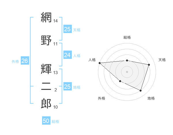 網野 輝二郎さんを姓名の画数から五運を鑑定