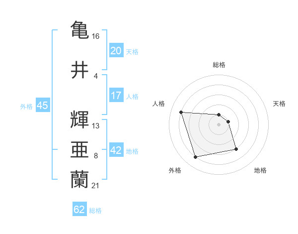 亀井 輝亜蘭さんを姓名の画数から五運を鑑定