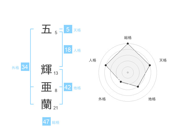 五 輝亜蘭さんの総格は47画の5点!
