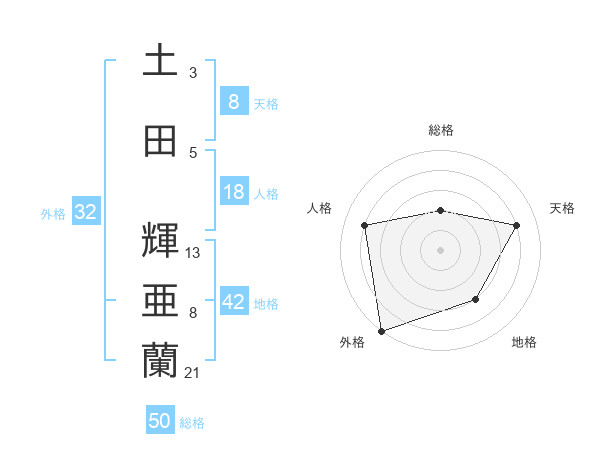 土田 輝亜蘭さんを姓名の画数から五運を鑑定