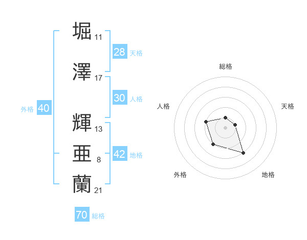 堀澤 輝亜蘭さんの総格は70画の1点!