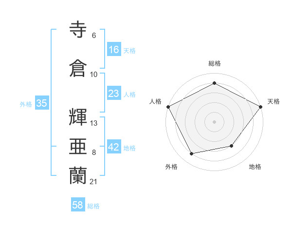 寺倉 輝亜蘭さんの総格は58画の4点!