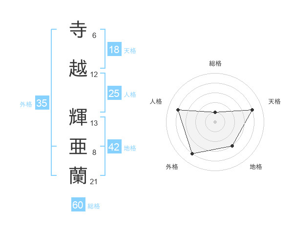 寺越 輝亜蘭さんの総格は60画の1点!