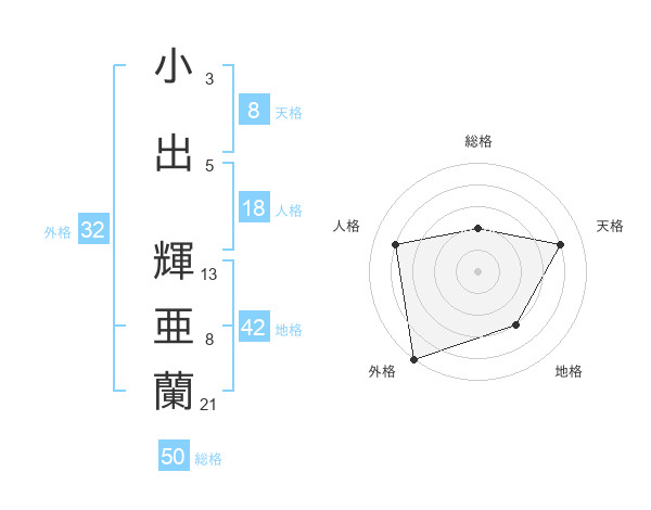 小出 輝亜蘭さんを姓名の画数から五運を鑑定