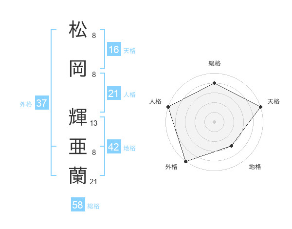 松岡 輝亜蘭さんを姓名の画数から五運を鑑定