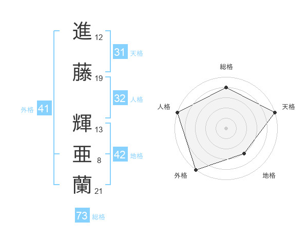 進藤 輝亜蘭さんの総格は73画の4点!