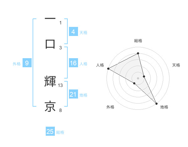 一口 輝京さんの総格は25画の4点!