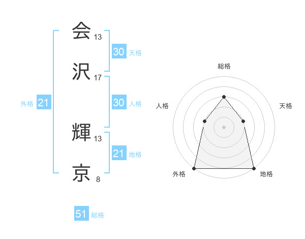 会沢 輝京さんを姓名の画数から五運を鑑定