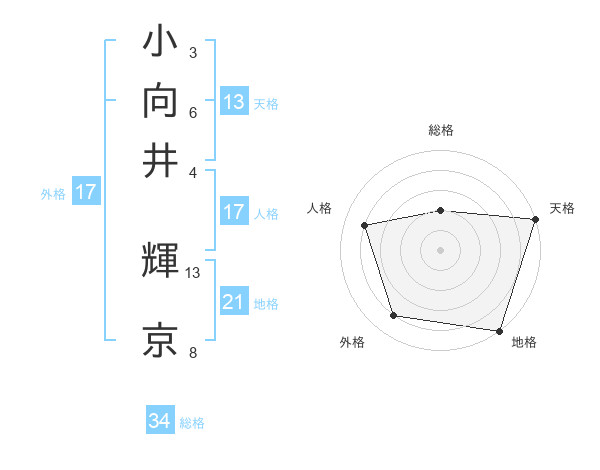 小向井 輝京さんを姓名の画数から五運を鑑定