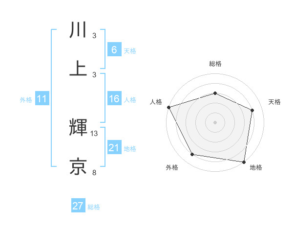 川上 輝京さんの総格は27画の3点!