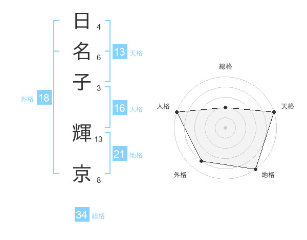 日名子 輝京さんの天格は13画の5点!