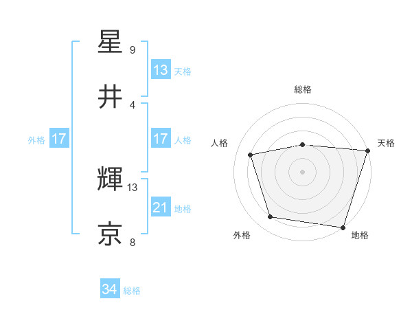 星井 輝京さんの天格は13画の5点!