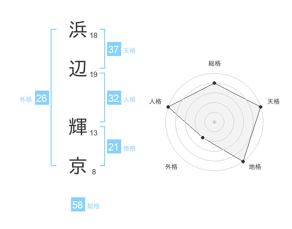 浜辺 輝京さんを姓名の画数から五運を鑑定